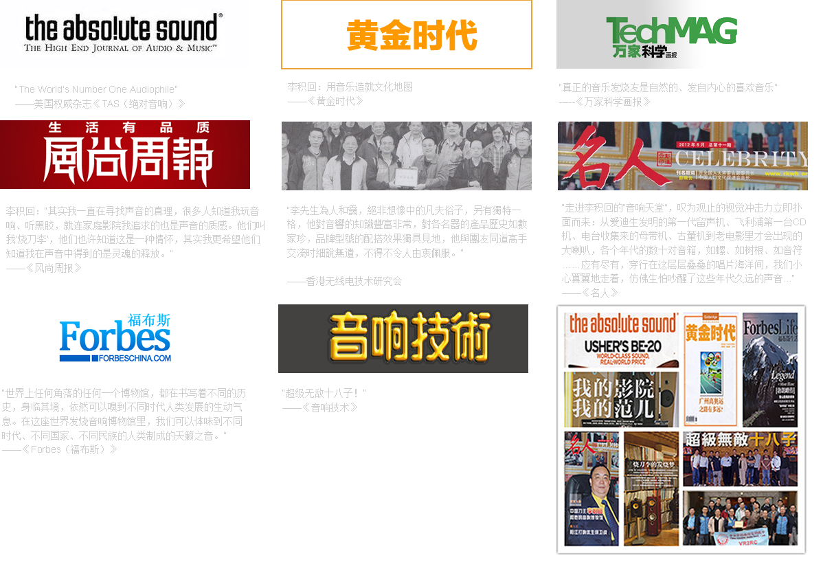 在這里,你可以領(lǐng)略到世界眾多經(jīng)典音響品牌的無限魅力,如ATC、B&W、JBL、Cello、Dynaudio、Wilson、westlake、EmmLabs、Genesis、PMC、B&O、Venture、FM Acoustics、Goldmund、HALCRO、Infinity、Jadis、Kharma……